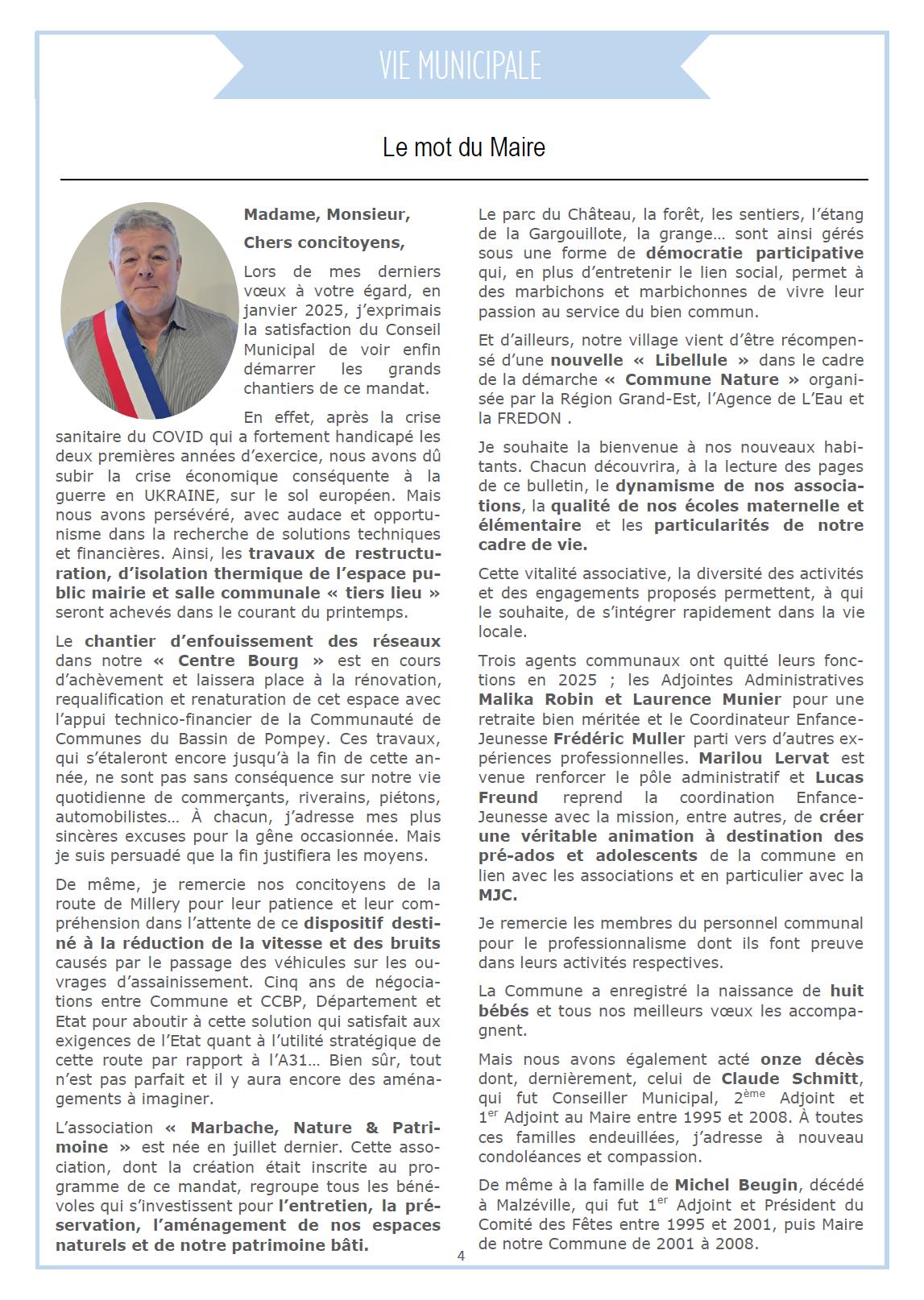 Lirele mot du maire et du maire du CME (conseil municipal d'enfants) page n° 1 : ici page n° 2 : ici Lire le bulletin municipal 2025 : ici |